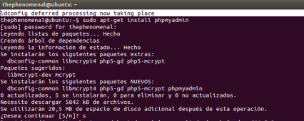 4:Para instalar phpMyadmin escribimos lo siguiente en una terminal (puede ser la misma): sudo apt-get install phpmyadmin